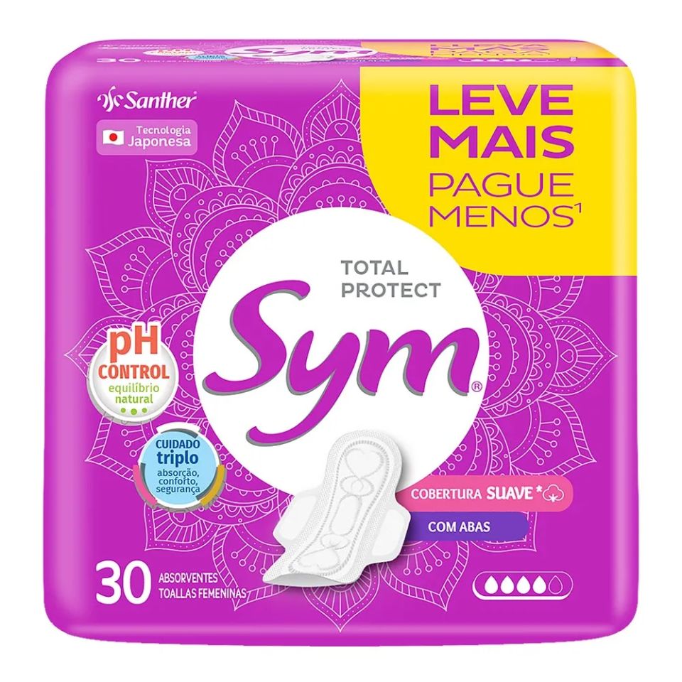 Experimente o Absorvente Sym Rosa com abas Conforto e proteção garantidos durante o dia todo.