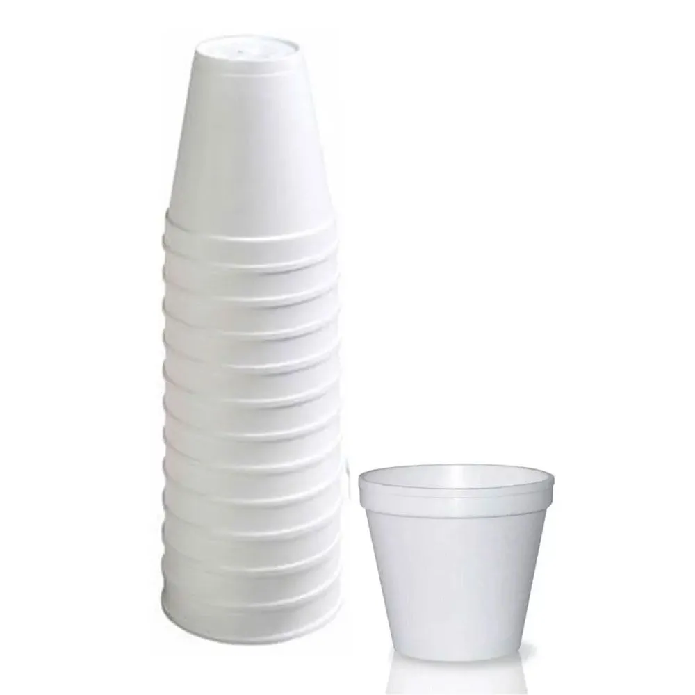 Copos fabricados em isopor térmico, ideais para armazenamento de alimentos e líquidos, quentes ou frios, como leite, café, vinho, iogurte, chás, achocolatados