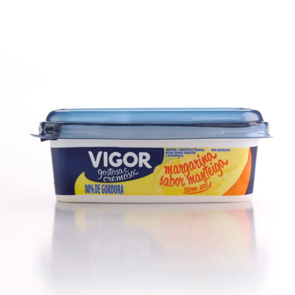 Margarina sabor manteiga com sal Vigor, muito mais gostosa, muito mais cremosa e com exclusivo sabor manteiga. Uma delícia com pães, torradas
